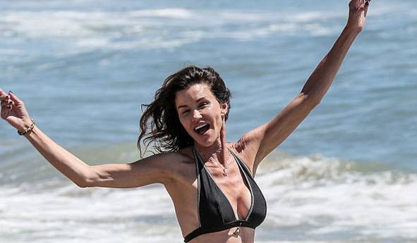 60-летняя Дженис Дикинсон, позиционирующая себя как первая в мире супермодель, на побережье Малибу