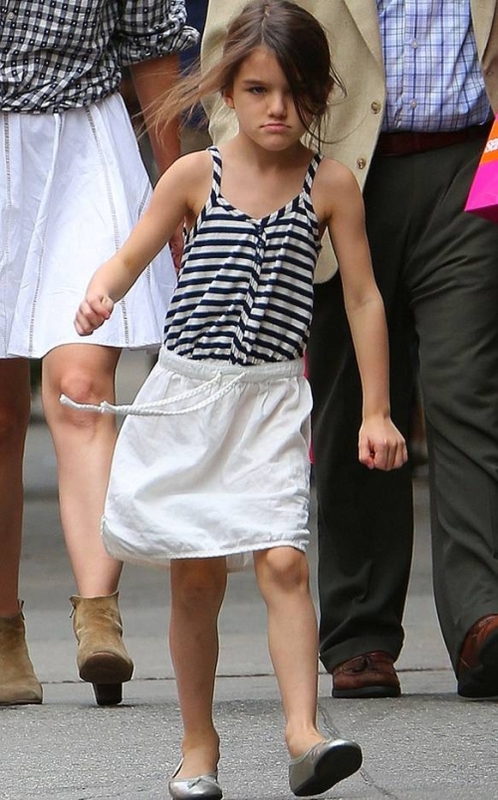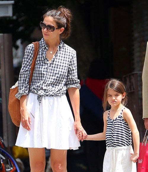 Кэти Холмс со своей дочерью Сури были замечены в воскресенье, гуляющее по Нью-Йорку. Мама с дочкой были одеты в одной цветовой гамме, белые юбки и черно-белый верх. Интересно, что заметив папарацци 6-летняя Сури начала позировать и кокетничать.