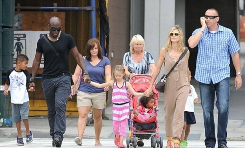Еще семья, еще вместе, телохранитель идет рядом с Клум, июнь 2011 года.