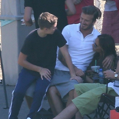В последнее время им не часто удается вот так, всем вместе, весело провести время. Виктория занята своей карьерой модельера, у Дэвида постоянно тренировки в LA Galaxy. Однако в данный момент, Дэвид лечит свою травму лодыжки, а у Виктории выдался выходной, чем они и воспользовались, посетив игру своих сыновей.