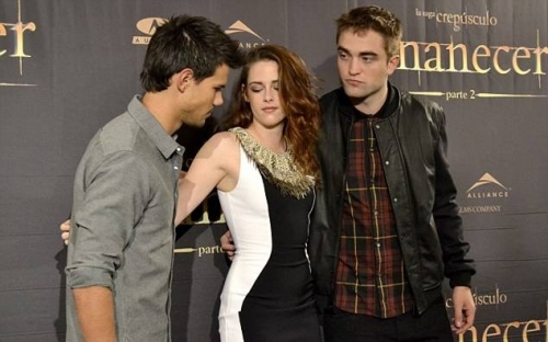 Марафон продолжается: Кристен Стюарт, Роберт Паттинсон и Тейлор Лотнер на мадридской премьере «Сумерки. Сага. Рассвет: Часть 2"