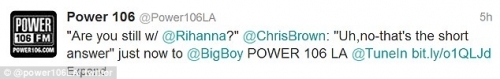«Вы все еще ж / @ Rihanna?» @ ChrisBrown: «Э-э, нет, это короткий ответ» сейчас на @ BigBoy Power 106 LA @ TuneIn bit.ly/o1QLJd