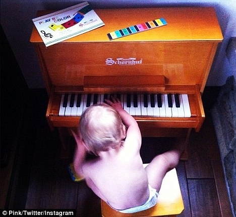 Ей недавно исполнился год, но похоже она пойдет по стопам своей мамы, знаменитой певицы Пинк. Певица, настоящее имя которой Алисия Мур, разместила фотографию на своем твиттере, где ее дочь играет на детском пианино.