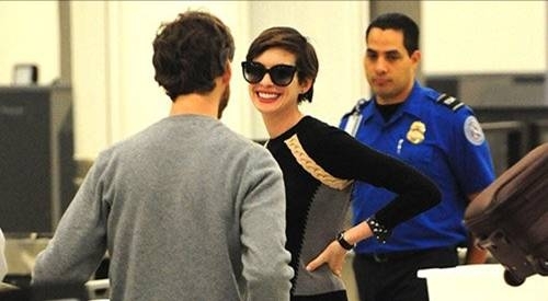 В среду утром Энн Хэтэуэй со своим мужем Адамом Шульманом покидали Лос-Анджелес. Сезон наград закончился, и они возвращались к себе домой в Нью-Йорк. Энн и Адама заметили в аэропорту Лос-Анджелеса, когда они проходили службу безопасности.