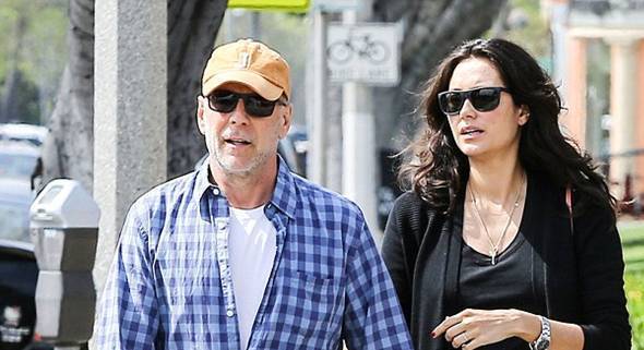 Брюс Уиллис не слишком частый гость на страницах таблоидов. Однако в понедельник вечером папарацци смогли сфотографировать его с молодой женой.