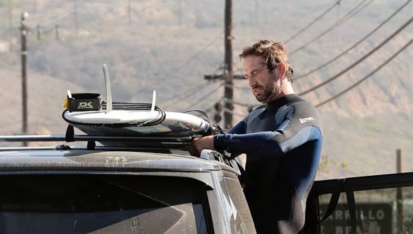 Джерард Батлер продемонстрировал свою безупречную фигуру в гидрокостюме, когда рано утром был замечен на побережье Лос-Анджелеса после катания на доске.