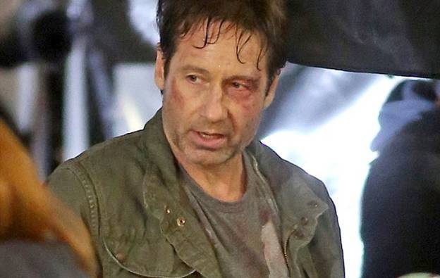 В Канаде продолжают идти полным ходом съемки сериала "Секретные материалы". В среду в окрестностях Ванкувера можно было наблюдать, как "избитый"  Фокс Малдер (Дэвид Духовный) о чем-то разговаривает с членами съемочной группы.