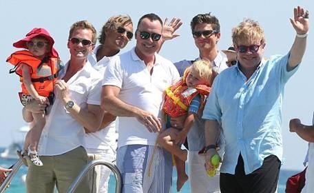 Элтон Джон, его партнер Дэвид Ферниш и их дети - трехлетний Захари и годовалый Илия, сейчас отдыхают в Сен-Тропе.