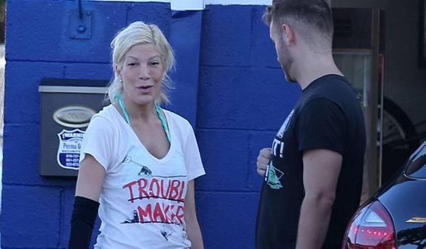 Тори Спеллинг напугала прохожих, когда в субботу днем вышла из косметологического центра Medical Spa в Калабасе.