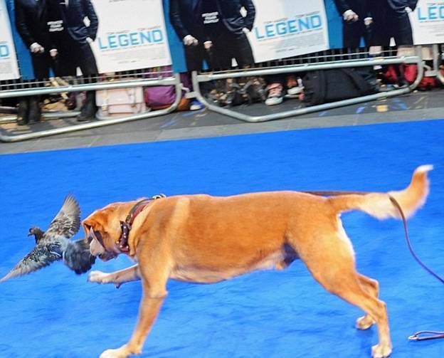 В среду вечером состоялась лондонская премьера фильма "Легенда", где главную роль сыграл Том Харди. Поэтому нет ничего удивительного, что актер привлек к себе повышенное внимание. Правда, если по-честному, внимание было привлечено к его окружению - беременной супруге Шарлотте Райли и их псу Вуди.