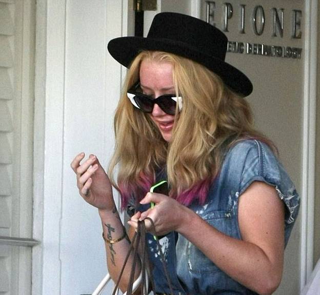 При этом, хотя 25 летняя рэпперша скрывала свое лицо широкополой шляпой и солнцезащитными очками, можно было заметить, что оно было в красных пятнах.