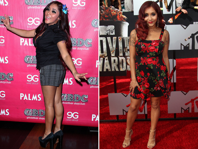 Став мамой для сына Лоренцо, Николь "Снуки" Полицци расцвела, ее образы приобрели свежесть и утонченность. Бывшая звезда "Jersey Shore", которая сейчас беременна вторым ребенком, появилась на красной ковровой дорожке в апреле 2014 года на церемонии MTV Movie Awards в веселом цветочном платье, специально разработанном для ее линии одежды "Снуки Любовь".