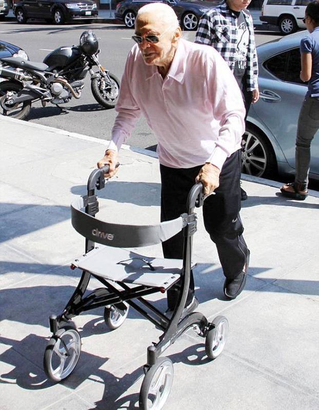 В четверг днем легендарный актер был замечен на улицах Беверли-Хиллз. Актер, который испытывает явные трудности при ходьбе, не стал пользоваться инвалидной коляской, а воспользовался своеобразными ходунками, с помощью которых весьма резво прошелся от машины до нужного ему места.