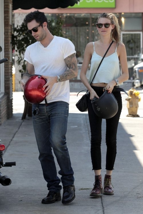 Адам Левин был замечен со своей девушкой Бехати Принслу, когда они вместе вышли после обеда из кафе Mustard в Лос-Фелис. Парочка направлялась к своему мотоциклу, который был припаркован недалеко от кафе.