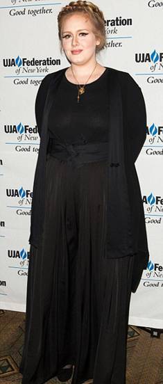 Она сделала всего несколько публичных появлений после того, как родила своего сына в октябре прошлого года. Поэтому тем удивительней было видеть Адель на музыкальном обеде, который проходил в пятницу в Нью-Йорке.