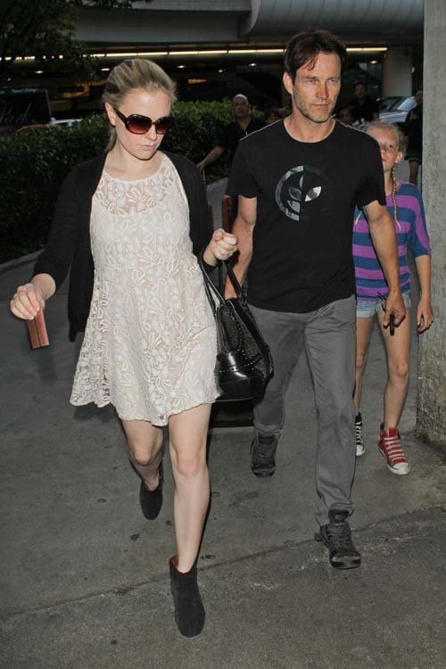 Чуть позже в аэропорту были замечены коллеги Александра по сериалу «Настоящая кровь» Анна Пакуин, которая ждет своего первого ребенка со своим супругом Стивеном Мойер, вместе с ними была 10-летняя дочь Стивена, Лилак, от его отношений с журналисткой Лорьен Хайнс.