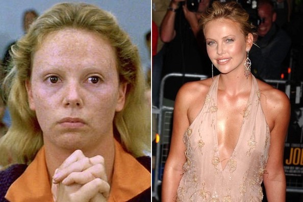 Шарлиз Терон для фильма Монстр, где она играет серийную убийцу, поправилась почти на 15 килограмм, сбрила свои брови, и носила вставные зубы. Как результат, Оскар в копилке актрисы.