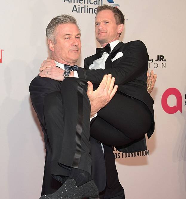 На красной ковровой дорожке праздничного вечера, который был устроен благотворительным фондом Элтона Джона, был замечен Алек, несший на руках, как красну девицу, Нила Патрика Харриса.