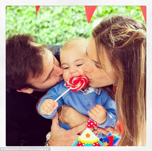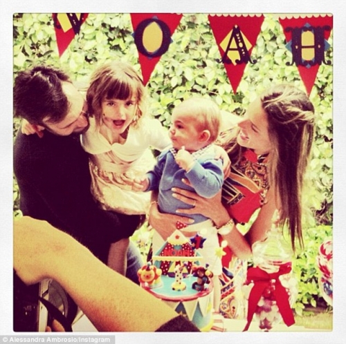 Алессандра разместила фотографии в твиттере, подписав: «Первый день рождения моего ребенка. Нет ничего лучшего любви семьи». На фото: Ее жениз Джейми Мазур, дочь Аня и сын Ной и Алессандра