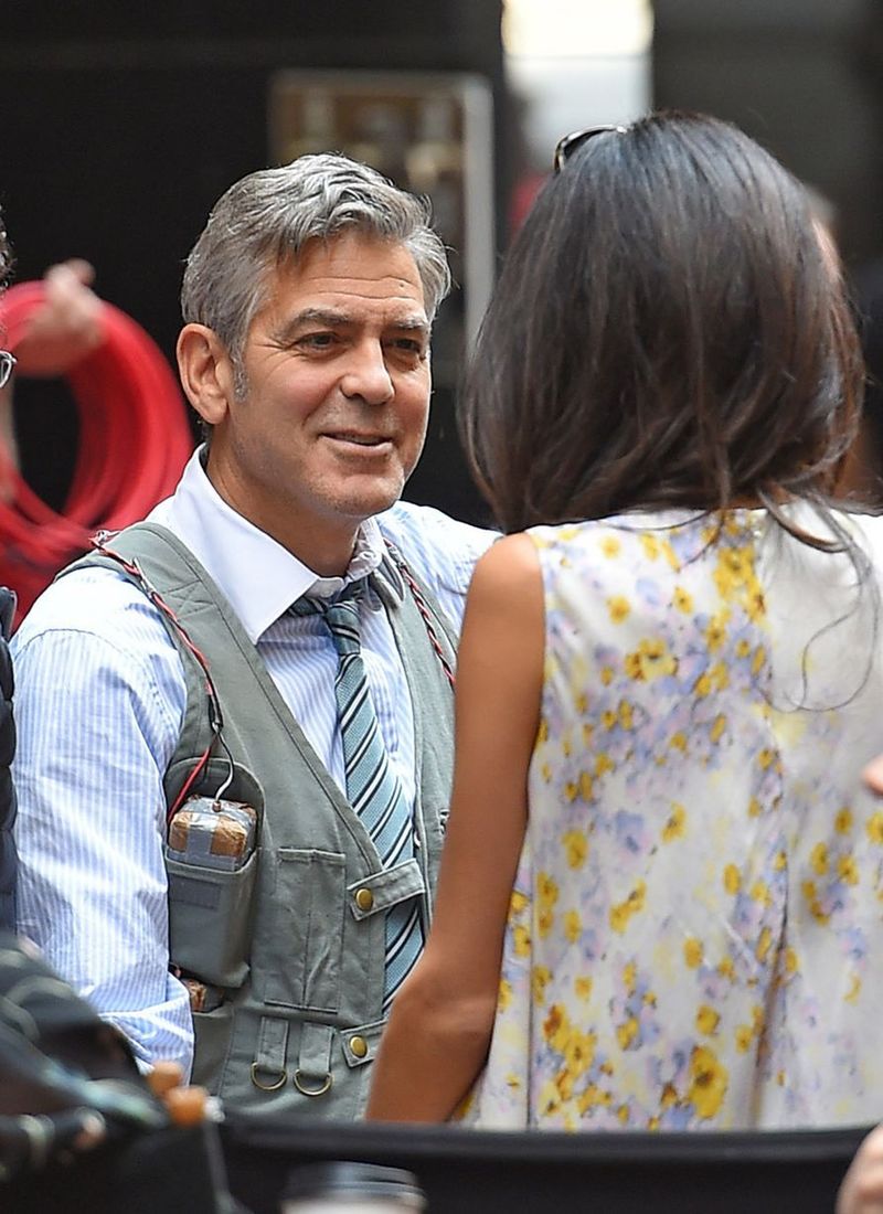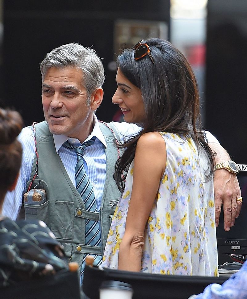 Сделав паузу в съемках нового триллера "Денежный монстр", которые проходят на улицах Большого Яблока, 53-летний Джордж был отвлечен его восхитительной женой.