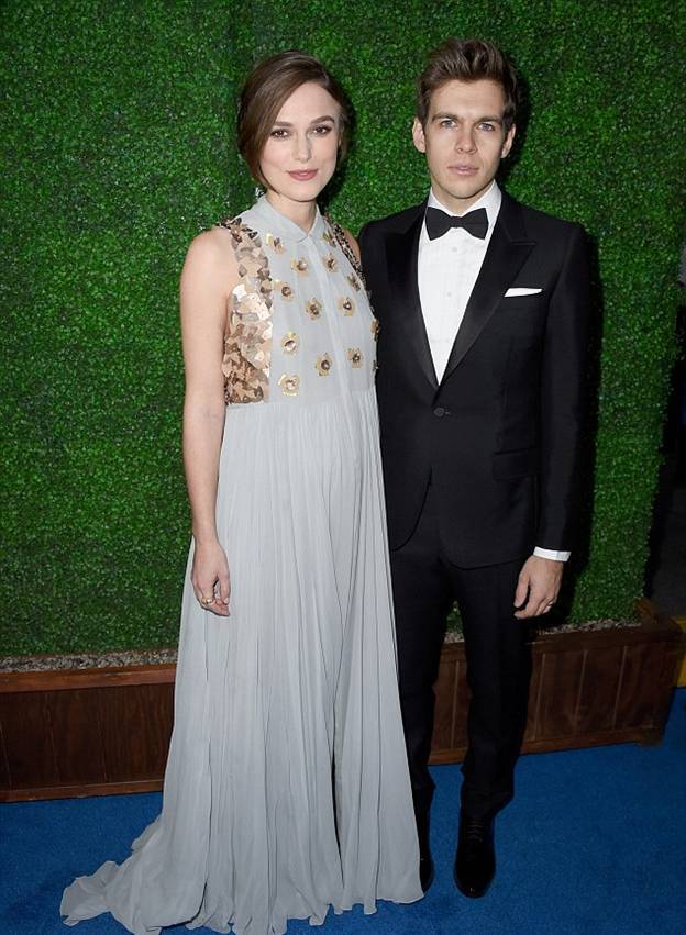 Беременная Кира Найтли прибыла на церемонию со своим мужем Джеймсом Райтоном. На актрисе было платье от Delpozo, которое удачно скрывало ее растущий животик.