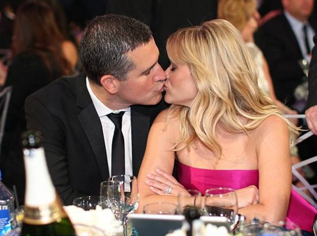 Риз Уизерспун прибыла на с мужем Джимом Тот в длинном платье черно -малинового цвета.