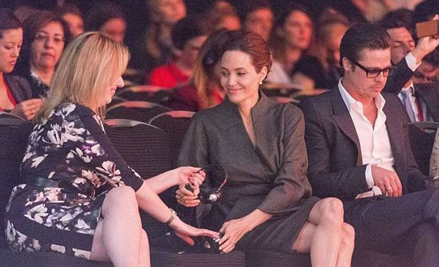 На этот раз она посетила саммит со своим женихом Брэдом Питтом. Звездная пара была в компании министра иностранных дел Великобритании Уильма Хейга и его жены Флионы Гааге.
