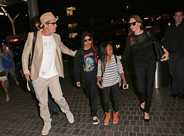 В пятницу вечером Анджелина Джоли и Брэд Питт были замечены в международном аэропорту Лос-Анджелеса. Пара со своими двумя детьми - Мэддоксом и Захрой, покидали Калифорнию, по предварительным данным, направляясь в Лондон.