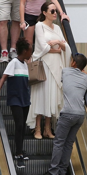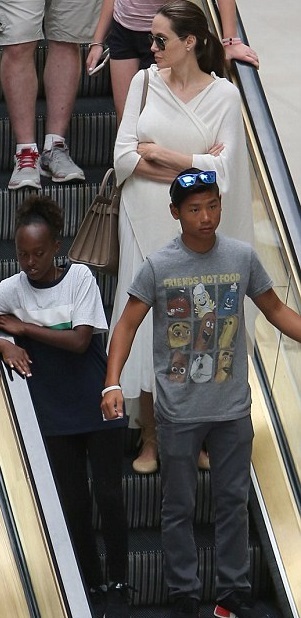 В воскресенье Анджелина Джоли отправилась на шоппинг с 12-летним Паксом и 11-летней Захарой. 41-летняя актриса с детьми прогуливалась по торговому центру Westfield, который расположен в центре Лос-Анджелеса.