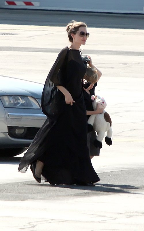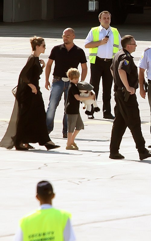 Анджелина Джоли в субботу утром приземлилась в аэропорту Сараево. 37-летняя актриса прибыла вместе со своими старшими детьми Паксом, Захрой и Шило.