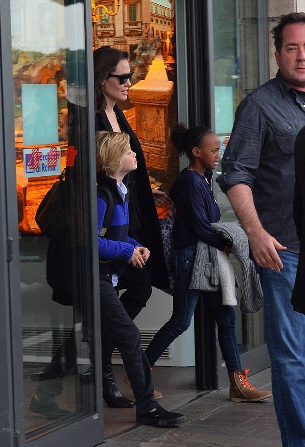 Сегодня, 7 января, Анджелина Джоли прилетела в Италию. 39-летняя актриса была замечена с дочерьми Шайло и Захарой в аэропорту Чампино.