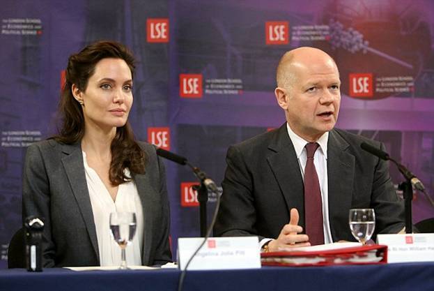 Анджелина Джоли и бывший министр иностранных дел Великобритании Уильям Хейг во вторник открыли в Лондонской школе экономики научно-исследовательский центр.