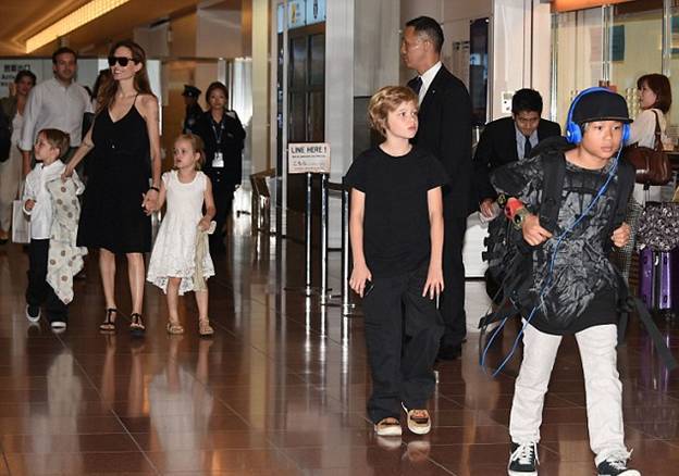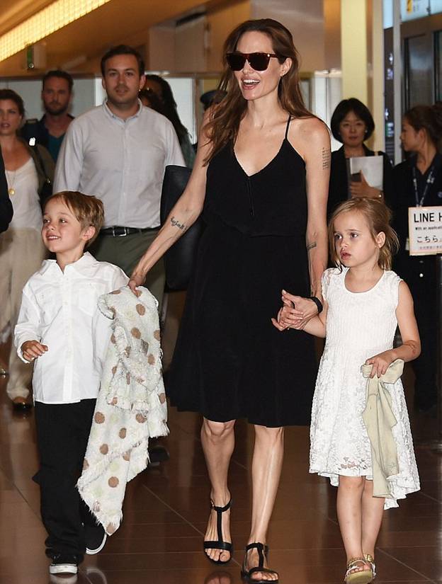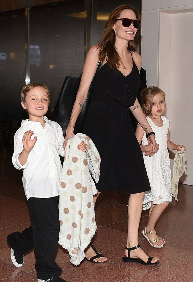 Сопровождали ее четверо детей - десятилетний Пакс, восьмилетняя Шайло и пятилетние Нокс и Вивьен.