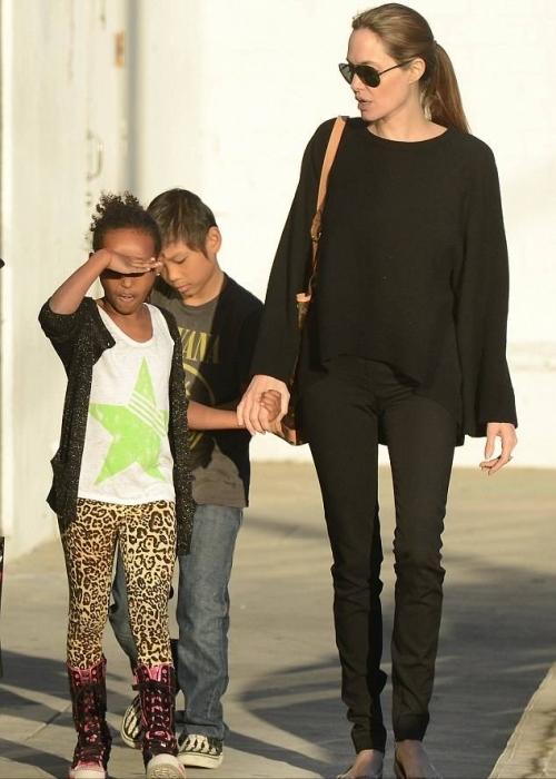 Анджелину Джоли редко удается снять, так как она не посещает различные вечеринки и фешенебельные рестораны. Ее частная жизнь фактически скрыта от окружающих. Однако в среду, 39-летняя актриса была замечена на улицах Лос-Анджелеса, когда со своими двумя детьми: 8-летним Паксом и 7-летней Захрой, посетила магазин детской одежды.