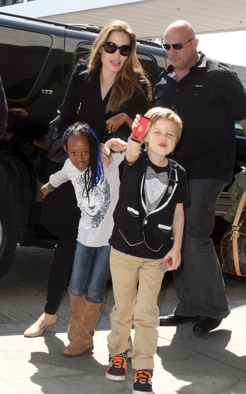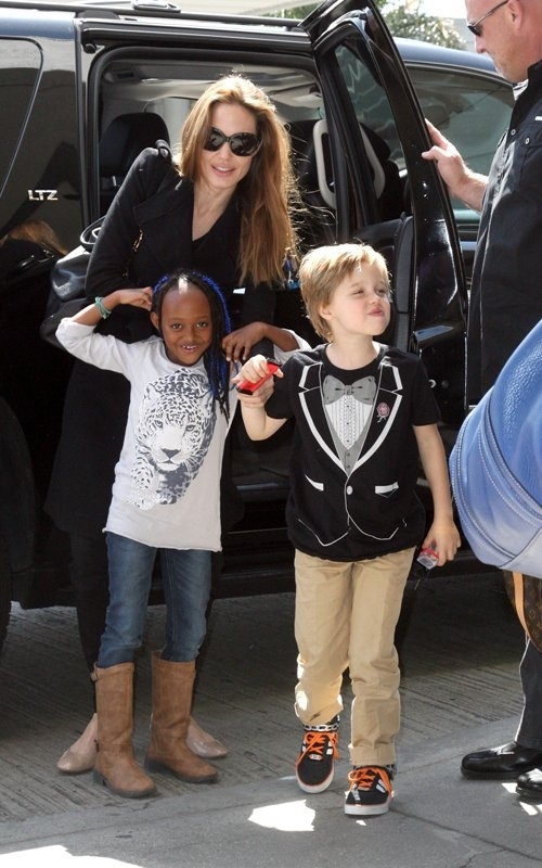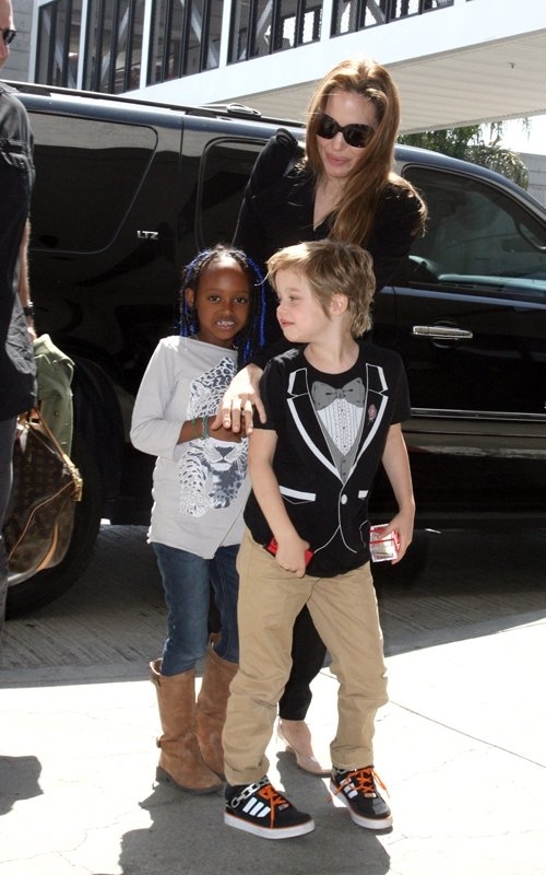 Анджелина Джоли в аэропорту Лос-Анджелеса со своими дочерьми.