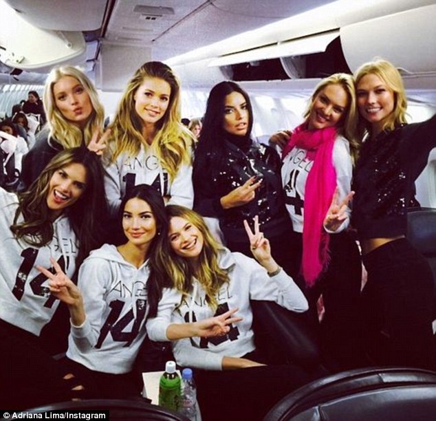 В первом ряду группового снимка можно узнать Алессандру Амбросио, которая была этим утром в качестве координатора девушек, Эльзу Хоск, Джордан Данн, Бехати Принслу, Кэндис Свейнпол, Адриану Лима и Лили Дональдсон.