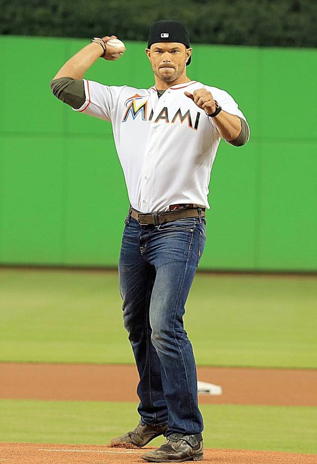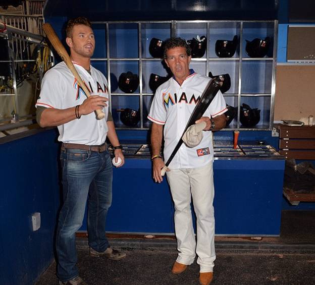 В рамках рекламы своего нового фильма "Неудержимые 3" Келлан Латс и Антонио Бандерас приняли участие в одной из бейсбольных игр. А именно открыли матч Майами против Сент-Луис Кардиналис.