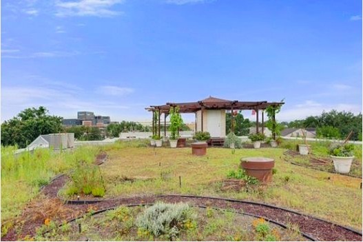 Здание состоит из трех этажей. На них расположились 22 комнаты, из которых 7 спален и 8 ванных. На крыше предусмотрена площадка для разведения садовых растений.