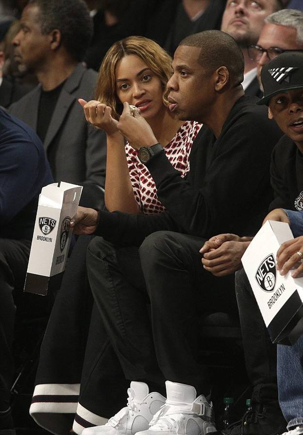 Поп-звезда посетила матч баскетбольной команды Нетс, одним из хозяев которой является ее супруг Джей-Зи, с которым она собственно и посетила игру.