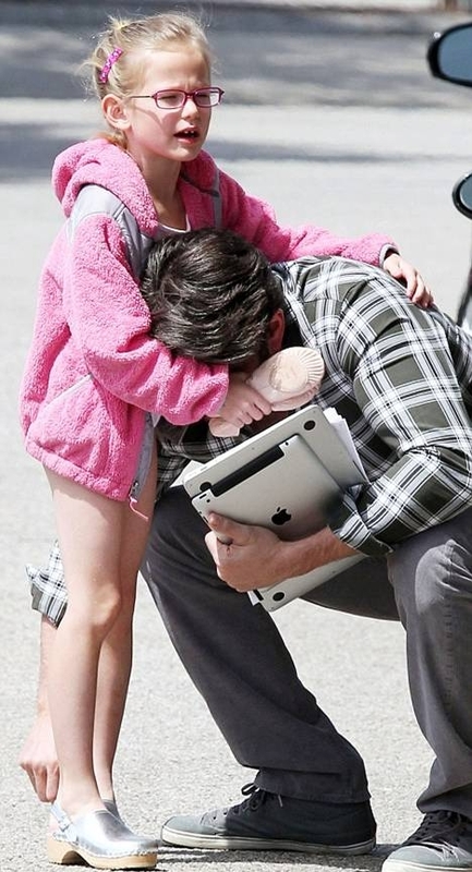 Вот и в эту субботу актера заметили со своей старшей дочерью Виолетт, когда он забрал ее с балетного класса. 39-летней актер с занятыми руками спокойно, не нервничая, помогал своей дочери поправлять босоножки.