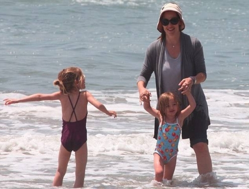 40-летняя Дженнифер с удовольствие играла в прибое со своими дочерьми 3-летней Серафиной и 6-летней Вайолет.