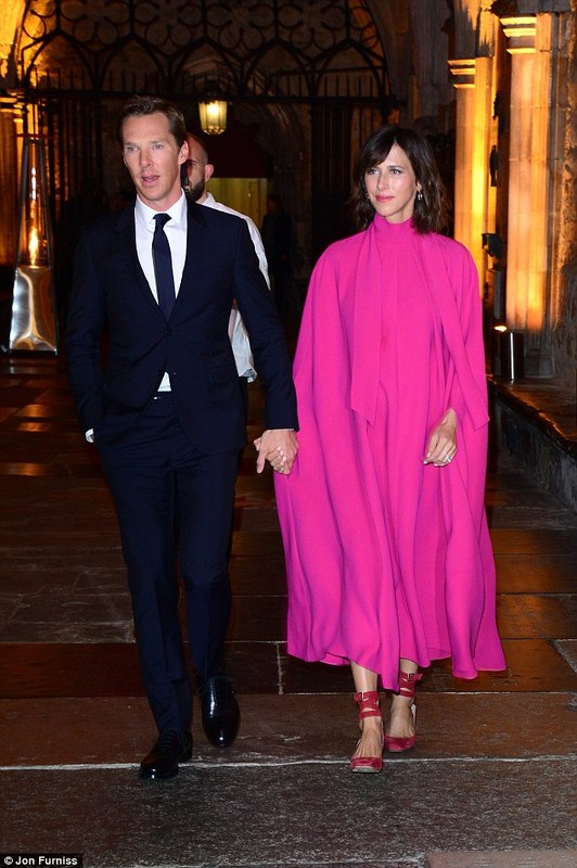 На показ картины Бенедикт пришел с супругой. Напомним, недавно стало известно, что Софи Хантер беременна вторым ребенком. Супруга актера выбрала платье свободного кроя от Valentino.