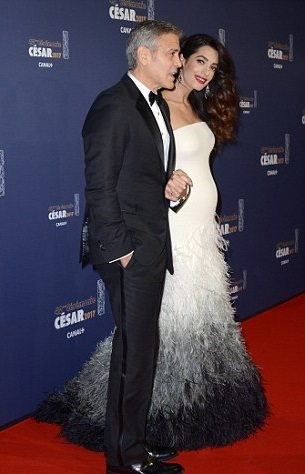 Минувшим вечером беременная Амаль Клуни блистала на красной дорожке кинопремии "Сезар-2017", которая прошла в парижском концертном зале Плейель. На мероприятие роскошная брюнетка прибыла в компании супруга Джорджа Клуни.