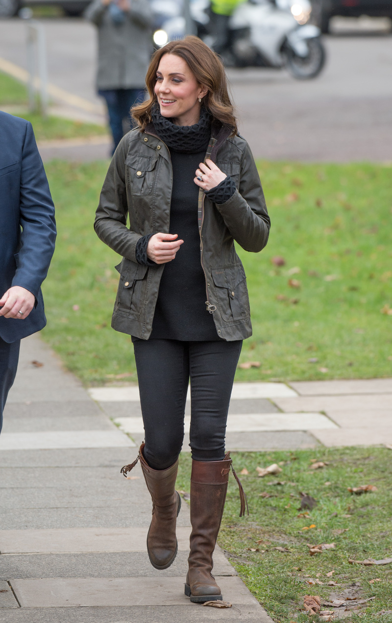 Кейт Миддлтон выбрала практичный образ в стиле casual, надев брюки и объемный свитер.