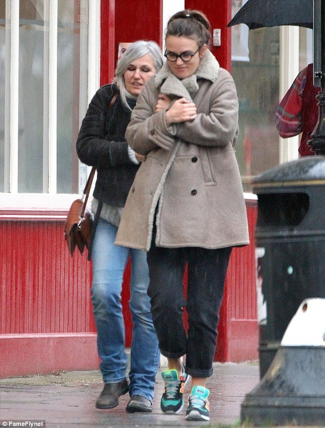 Кира Найтли, ожидающая своего первого ребенка, была замечена на улицах Лондона, когда под дождем покинула ресторан и направилась со своей матерью Шарман Макдональд к машине.