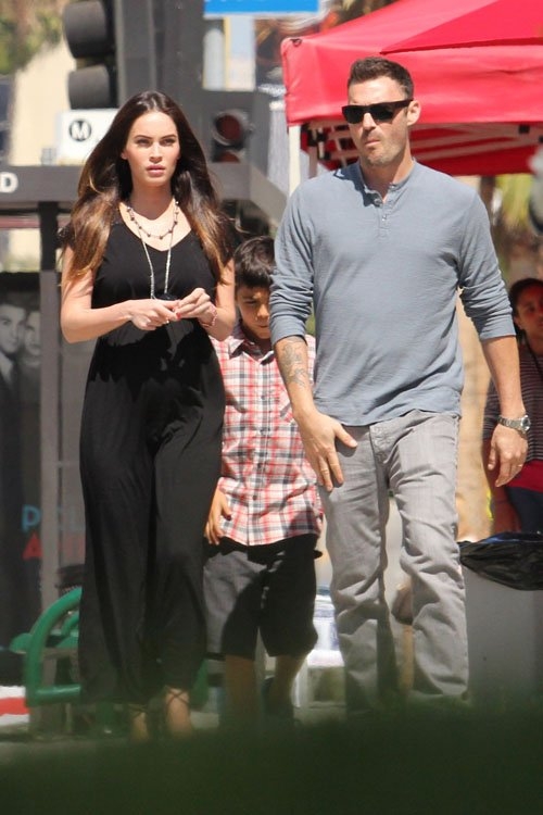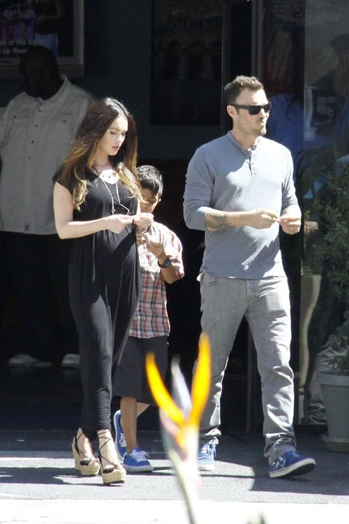 Беременная Меган Фокс была замечена со своим мужем Брайаном Остином Грин и пасынком Кассиусом во время воскресной прогулке в Лос-Анджелесе.