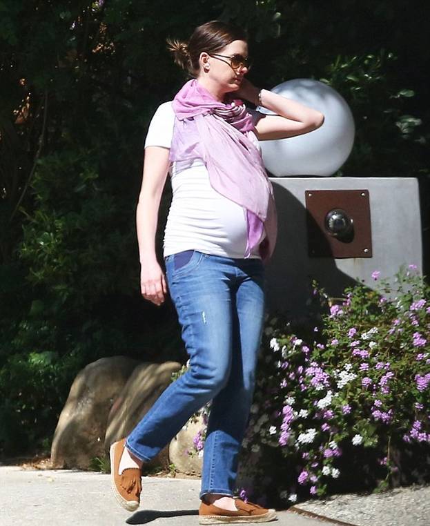 Энн Хэтэуэй несмотря на свой внушительный срок беременности не оставляет занятия спортом. Во вторник она была замечена, когда покидала спортзал в Лос-Анджелесе.