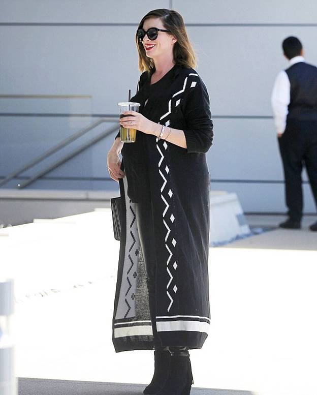 Мы со дня на день ожидаем новости о рождении у 33-летней Энн Хэтэуэй первенца. Пока же просто радуемся ее хорошему настроению.