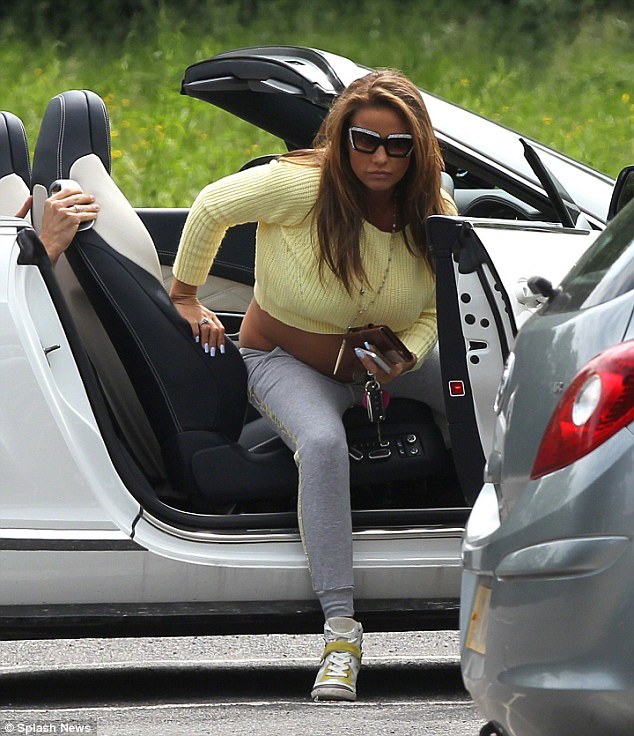 Кэти Прайс продемонстрировал ее уже округлившийся животик под коротким желтым топом во время прогулки в Сассексе с сестрой Софи и друзьями в воскресенье.