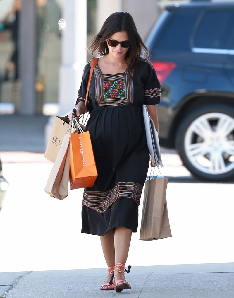 32-летняя беременная актриса совершала покупки в детском магазине Eggy, запасаясь необходимыми вещами для их будущего малыша с бойфрендом Хейден Кристенсеном.